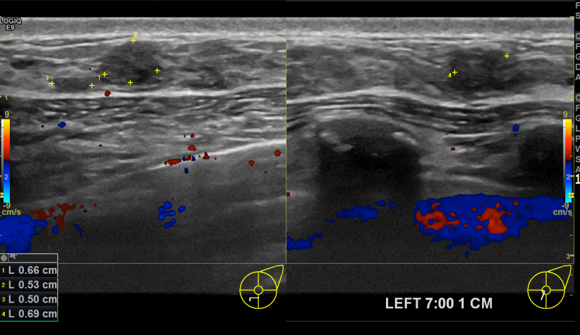 상기환자 외부검진상 이상소견으로 내원하신 40대여성분으로 좌측유방에 의심스러운 혹 조직검사 후 유방암 진단되셨습니다.