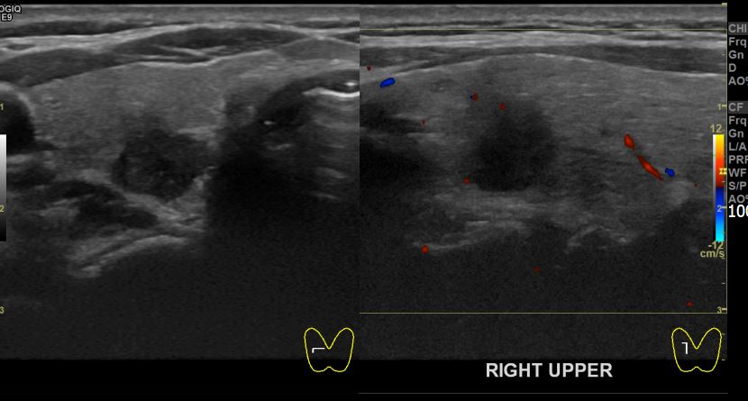 상기환자 건강검진상 이상소견으로 내원하신 50대중반 여성분으로 우엽 의심스러운혹세포검사진행후 갑상선암으로 진단되었습니다