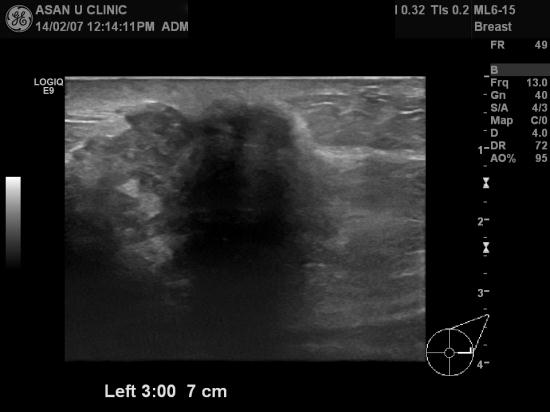 좌측유방에 만져지는 몽우리 주소로 내원하여