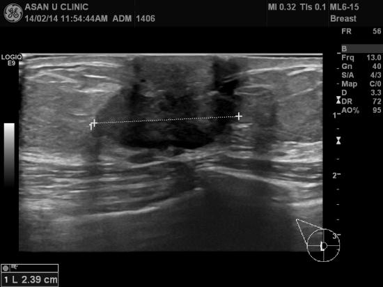 내원당시 우측 유방 유두하부에 만져지는 혹과 상외부에