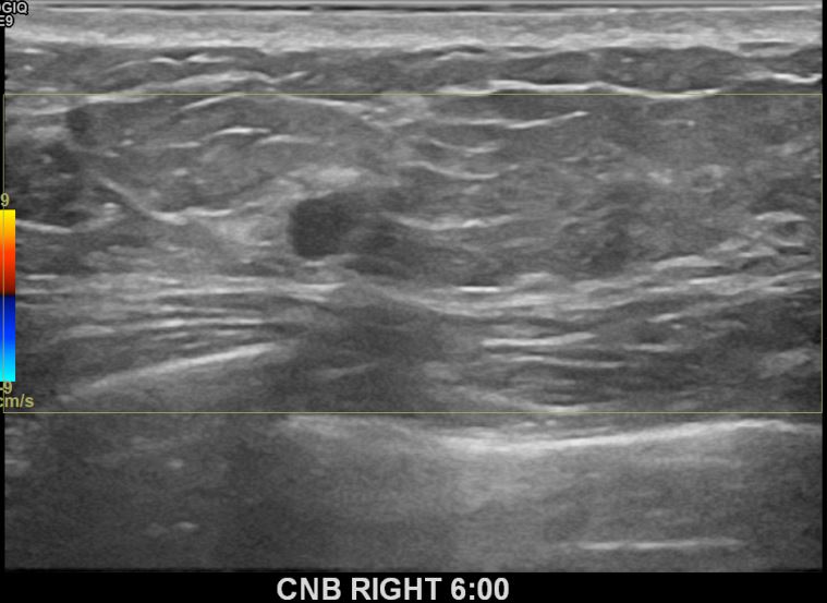 상기환자는 외부검사이상소견으로 내원하신 40대중반여성분으로 의심스러운 우측혹 조직검사 시행해 침윤성암 으로 진단되었습니다
