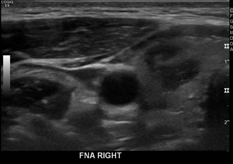 상기환자 외부검사이상소견으로 내원하신 40대 초반 여성분으로 의심스러운 우엽혹 세포검사진행후 갑상선암으로 진단되었습니다
