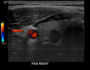 상기환자 외부검사이상소견으로 내원하신 50대 초반 남성분으로 의심스러운 갑상선 우측혹 세포검사진행후 갑상선암으로 진단되었습니다