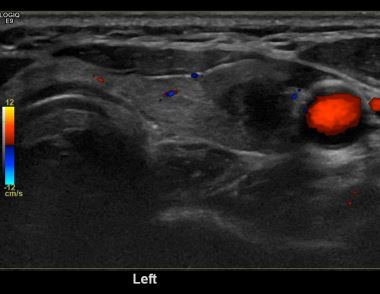 상기환자 외부검사이상소견으로 경과관찰위해 내원하신 50대 중반 여성분으로 의심스러운 갑상선 좌측혹 세포검사진행후 갑상선암으로 진단되었습니다