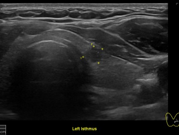 상기환자 외부검사이상소견 세침검사위해 내원하신 30대 중반 여성분으로 갑상선 초음파 시행후 의심스러운 갑상선 좌엽 결절 세포검사 진행후 갑상선암으로 진단되었습니다