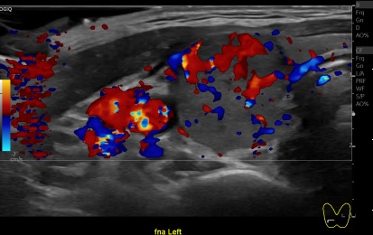 상기환자 외부검사이상소견 정밀검사위해 내원하신 40대초반 여성분으로 갑상선 초음파 시행후 의심스러운 갑상선 좌엽 결절 세포검사 진행후 갑상선암으로 진단되었습니다