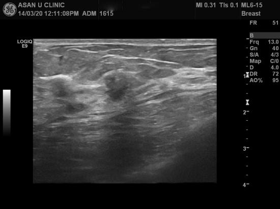 겨드랑이 림프절 비대소견이 없어 높은 완치율이 예상됩니다.