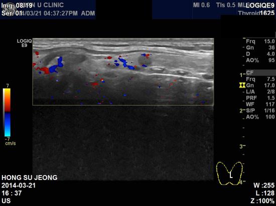 초음파상 갑상선 협부에 0.47 cm 의 결절이 발견되었고