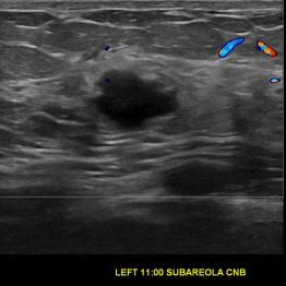 상기환자는 외부검사이상소견으로 내원하신 40대중반 여성분으로 의심스러운 좌측혹 조직검사 시행해 침윤성암으로 진단되었습니다