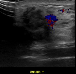 상기환자는 우측 유방 만져지는 멍우리와 통증있어 내원하신 40대중반 여성분으로 의심스러운 우측혹 조직검사 시행해 유방암으로 진단되었습니다