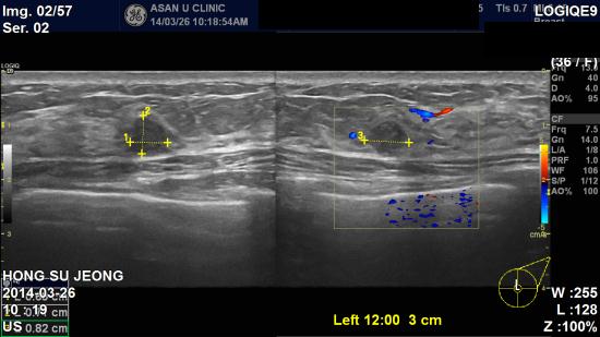 좌측유두에서 피가나와 내원하신 36세 여성분이십니다.