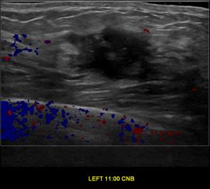 상기환자는 좌측 유방 만져지는 멍우리로 내원하신 30대중반 여성분으로 의심스러운 좌측혹 조직검사 시행해 유방암으로 진단되었습니다