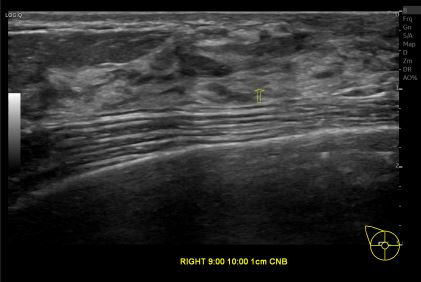 상기환자는 유방 추적관찰 위해 내원하신 50대 중반 여성분으로 의심스러운 우측 혹 조직검사 시행해 제자리암 진단되었습니다.
