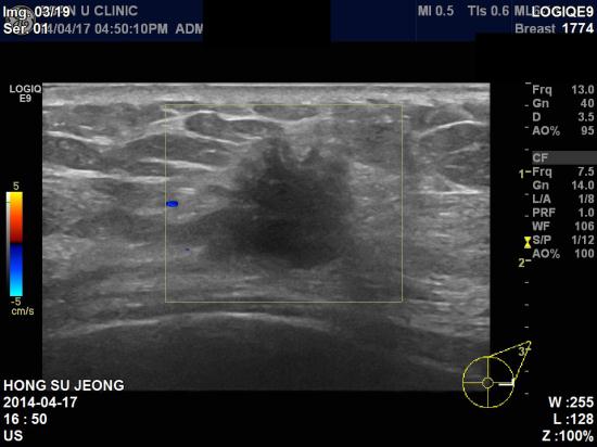 본원 초음파상 좌측 3: 30분 방향에