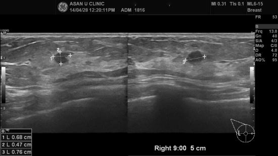 우측 유방에, 0.7cm의 혹이 있었고 인근에