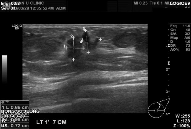 목욕하다 잡자기 잡히는 좌측유방에 혹이 있어 내원하신 70세 환자분입니다. 만져지는 혹이 있었지만 통증은 전혀없으셔서 머뭇거리시다 검진을 하시게 되었습니다. 만져지는 혹이 있다면 나는 괜찮을 것이라는 생각하지 마시고 반드시 검사를 받으시는 것이 좋습니다. 감사합니다.