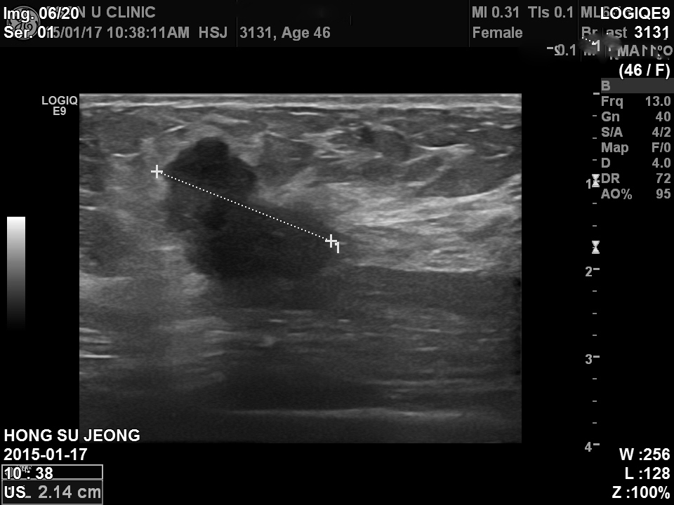 좌측 유방 상외측, 겨드랑이 근처에 2cm 이 넘는 혹이 있었고