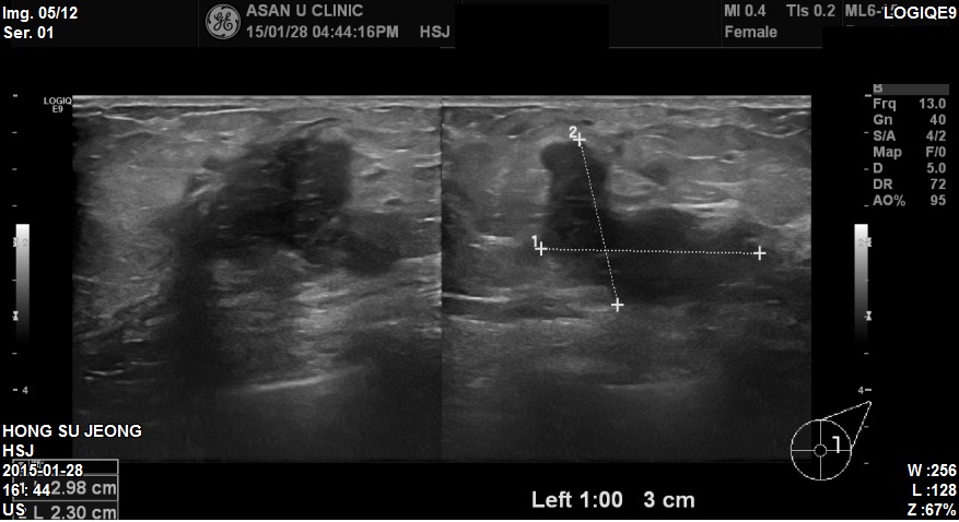 본원에서 좌측 1시방향에 2.9cm의 혹 조직검사하였고