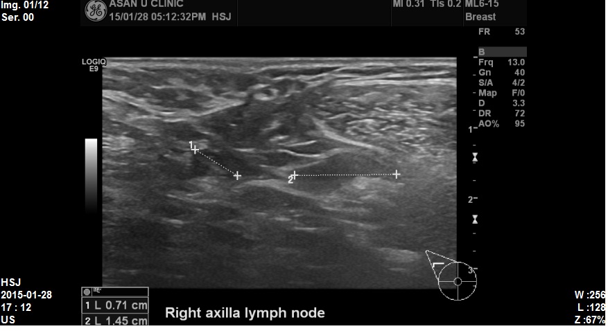 우측겨드랑이 부분초음파 다시 시행해보니