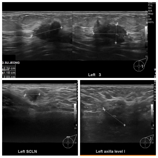 좌측쇄골아래와 겨드랑이에 림피절비대소견보여