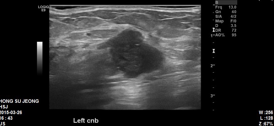 좌측유방에 만져지는 혹으로 타원 초음파후
