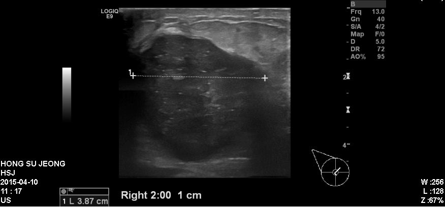 본원에서 우측유방 2시방향에 혹과 우측겨드랑이를 각각 조직검사와 세침검사 시행하였고
