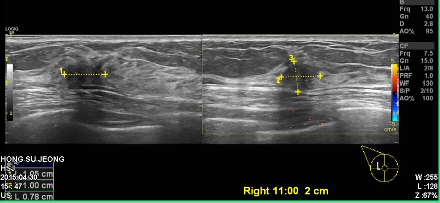 건강검진상 이상 소견으로 내원하신 50대 여성 분으로 우측 침윤성 유관암