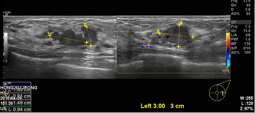건강검진상 이상 소견으로 내원하신 50대 여성분으로 좌측 침윤성 유관암 진단