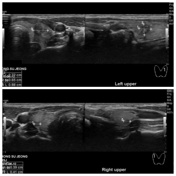 시행 후 양측 상엽에 의심되는 몽우리가 있어 세포검사 시행하였으며, 좌즉 갑상선