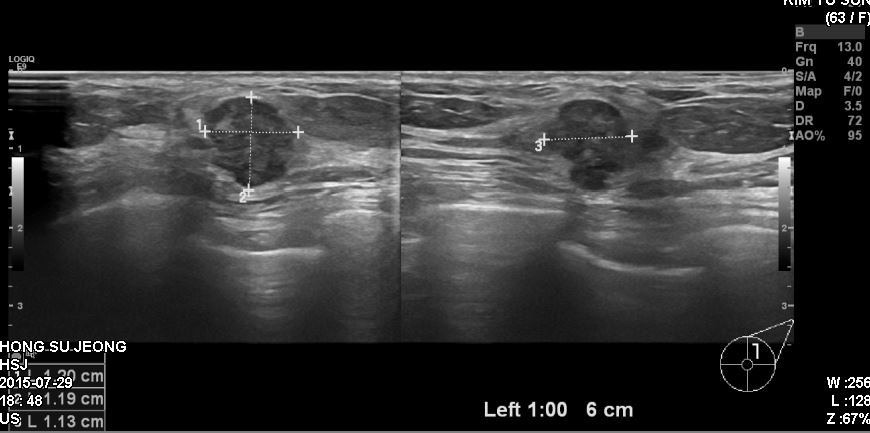 63세 여자분으로 건강검진상 이상소견보여 본원에서 초음파시행하고 조직검사 받은후