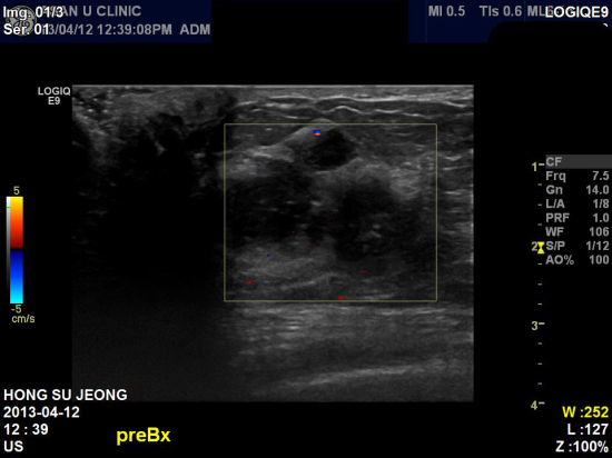 상기환자 우측 유방 통증은 없으나, 만져지는 멍우리로 내원하신 52세 여성분이십니다.