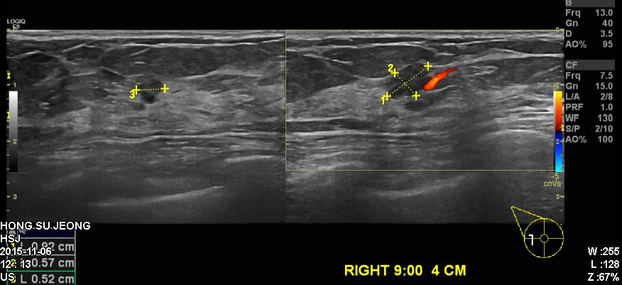 본원서 우측유방에 혹 조직검사 시행하였고