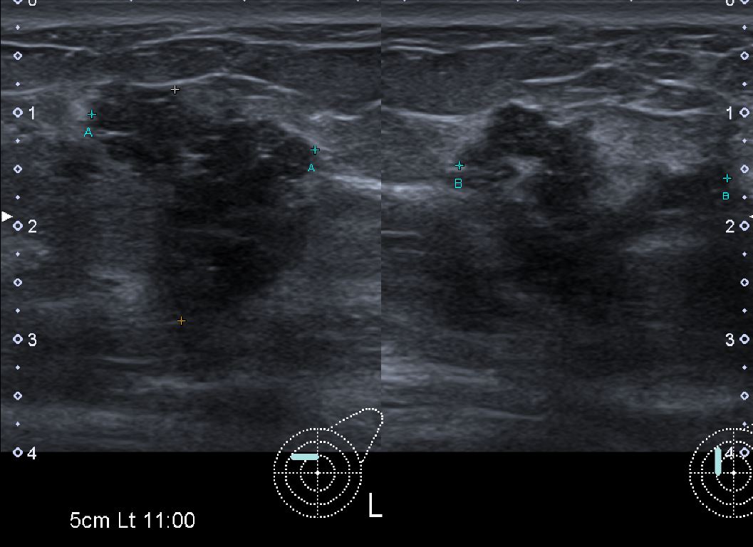 좌측유방 11시방향으로 조직검사시행후 상피내암진단되셨습니다.