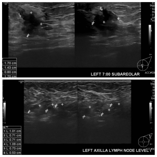 밑 만져지는 멍우리 조직검사 시행하여 좌측 침윤성 유방암 진단 되었고, 좌측 겨드랑이