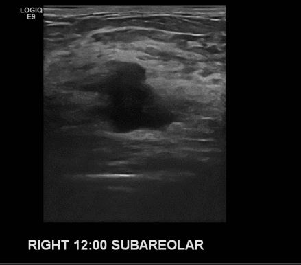 건강검진상 이상 소견으로 내원하신 40대 여성 분으로 우측 12시 방향 유두밑 으심