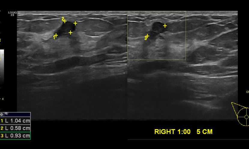 상기 환자 건강검진상 이상 소견으로 내원한 60대 여성분으로 우측 1시 방향에서