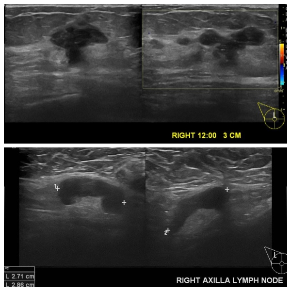 상기환자 우측 만져지는 멍우리로 내원하신 50대 여성 분으로 우측 12시 방향에서 3cm