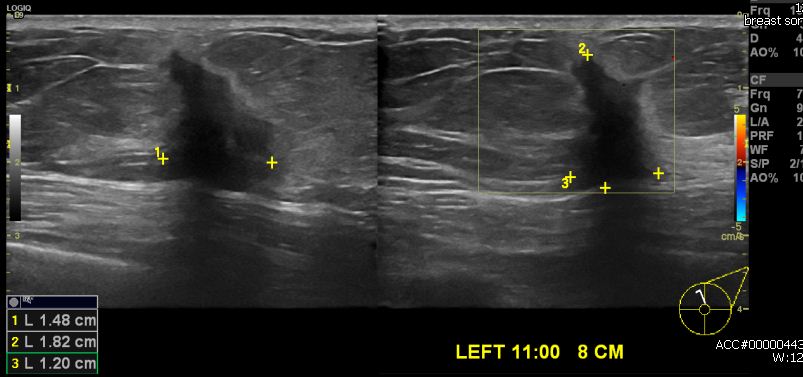 상기환자 건강검진상 이상 소견으로 내원하신 60대 여성분으로 좌측 11시 방향에서 8cm