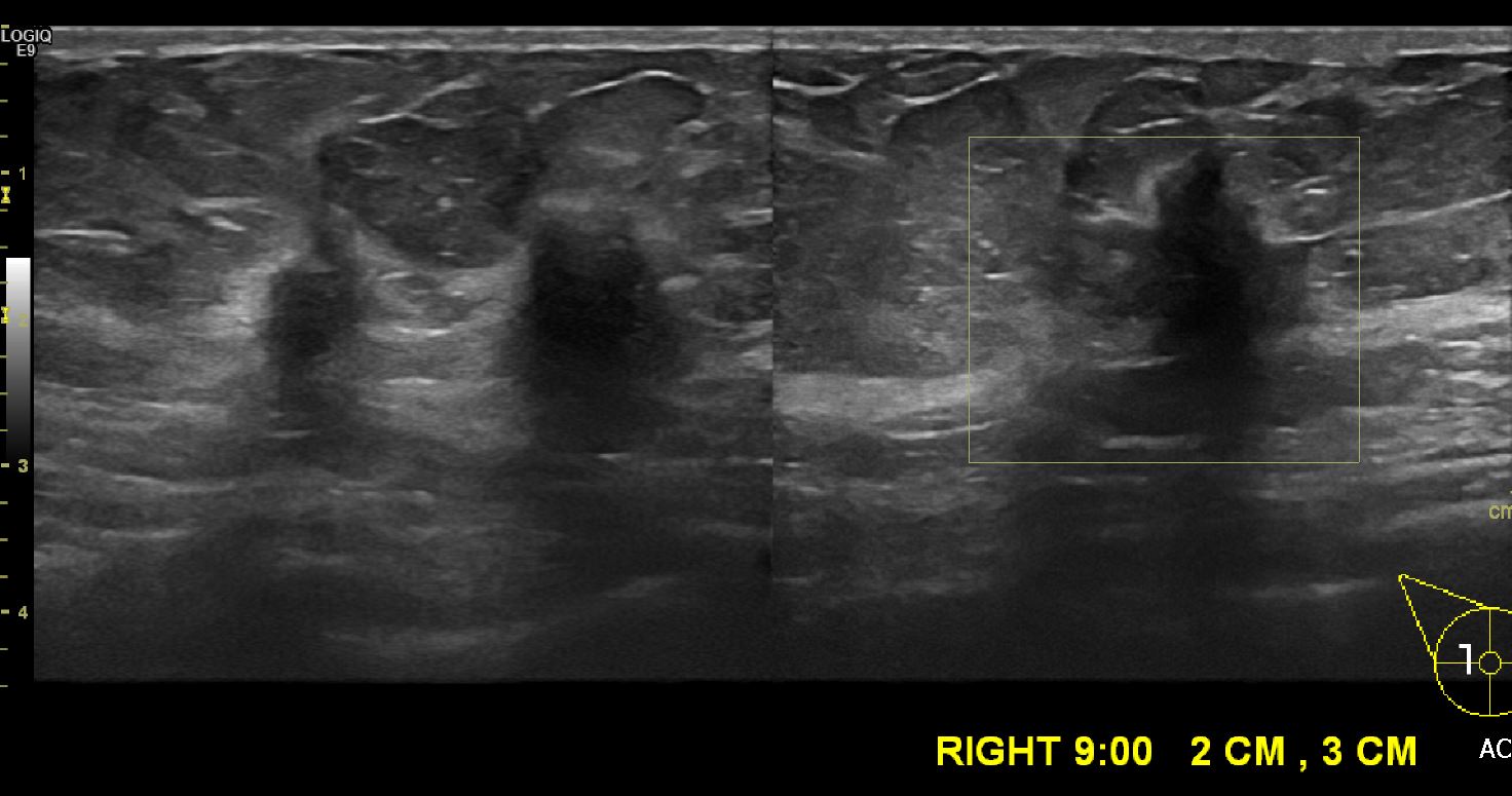 건강 검진상 이상 소견으로 내원하신 60대 여성분으로 우측 9시 방향 2~3 cm 거리의