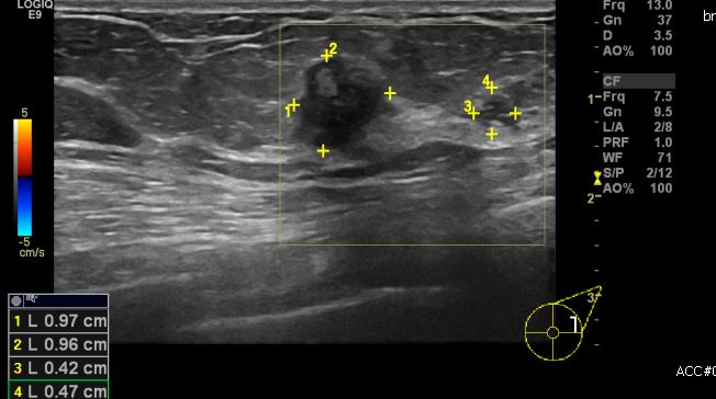 좌측 만져지는 멍우리로 내원하신 50대 여성분으로 좌측 2시30분 방향에 만져지는