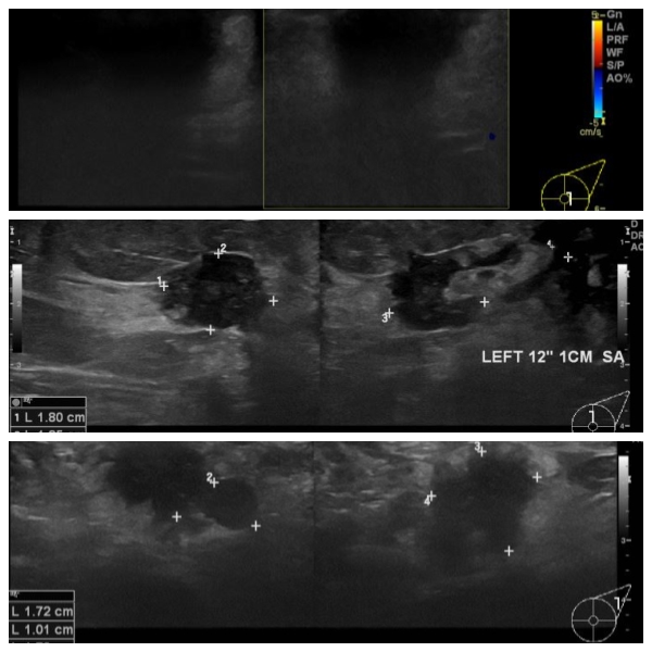 좌측 유방에 만져지는 멍우리로 내원하신 70대 여성분으로 본원 초음파 시행 후