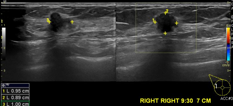 상기환자 건강검진상 이상 소견으로 내원하신 60대 여성 분으로 우측 유방 9시 30분