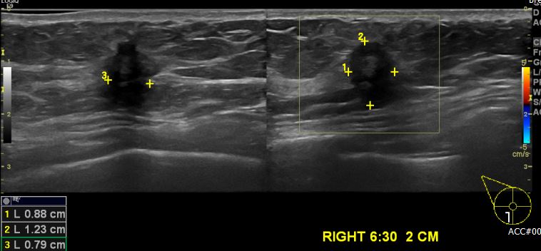 2cm 떨어진 거리에 의심 스러운 혹 조직검사 시행햐여 우측 침윤성 유관암 진단 되었습니다.