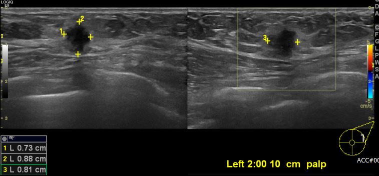 상기환자 좌측 유방에 만져지는 멍울로 내원하신 60대 여성분으로 좌측 2시