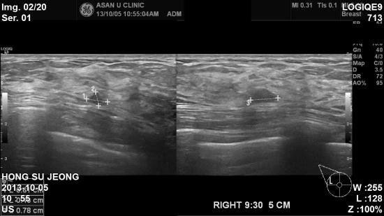 초음파 검사결과 우측유방에 0.78 cm 의 혹이있어