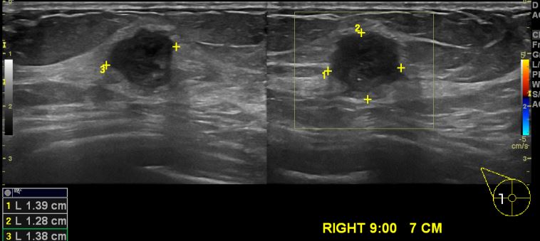 상기환자 건강검진상 이상 소견으로 내원하신 60대 여성분으로 우측 9시 방향에서7cm