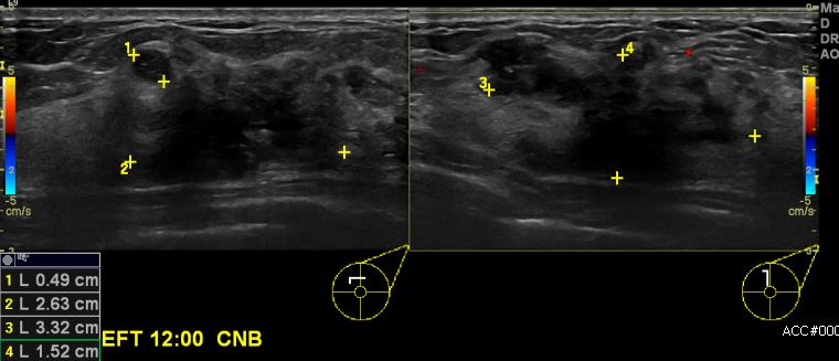 상기환자 건강검진상 이상소견으로 내원하신 50대 여성분으로 좌측 12시 방향에
