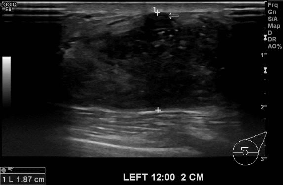 상기환자 좌측 유방에 만져지는 멍울로 내원하신 40대 여성분으로 본원 유방초음파 후