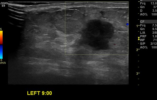 상기환자 좌측 유방에 멍울로 내원하신 60대 여성분으로 좌측유방 9시 방향에
