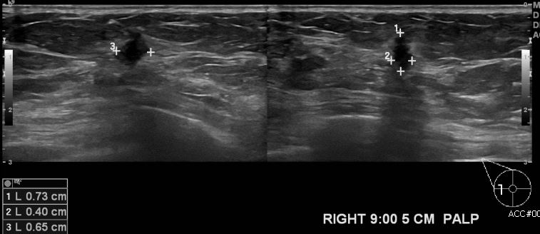 상기환자 건강검진상 이상 소견으로 내원하신 50대 여성분으로 우측 9시 방향에서